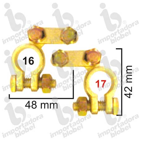 PAR TERMINALES BATERIAS 2 PERNOS.MATERIAL: BRONCE, TERMINAL PARA BORNES DE BATERIA. |